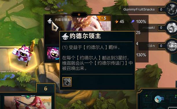 【约德尔人】:在每个对抗玩家结束时,一个随机的约德尔免费加入你的备战席。