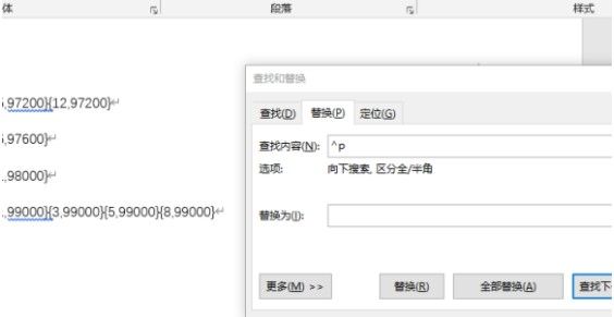 找内容^p,下面不填,然后你就得到了合在一起的文本