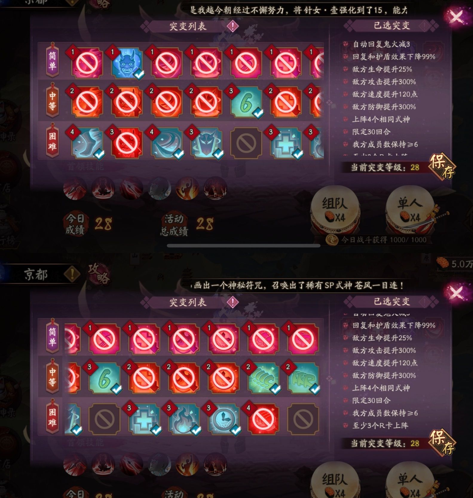 突变28如下图所示,突变27阵容需要调整一下回合数