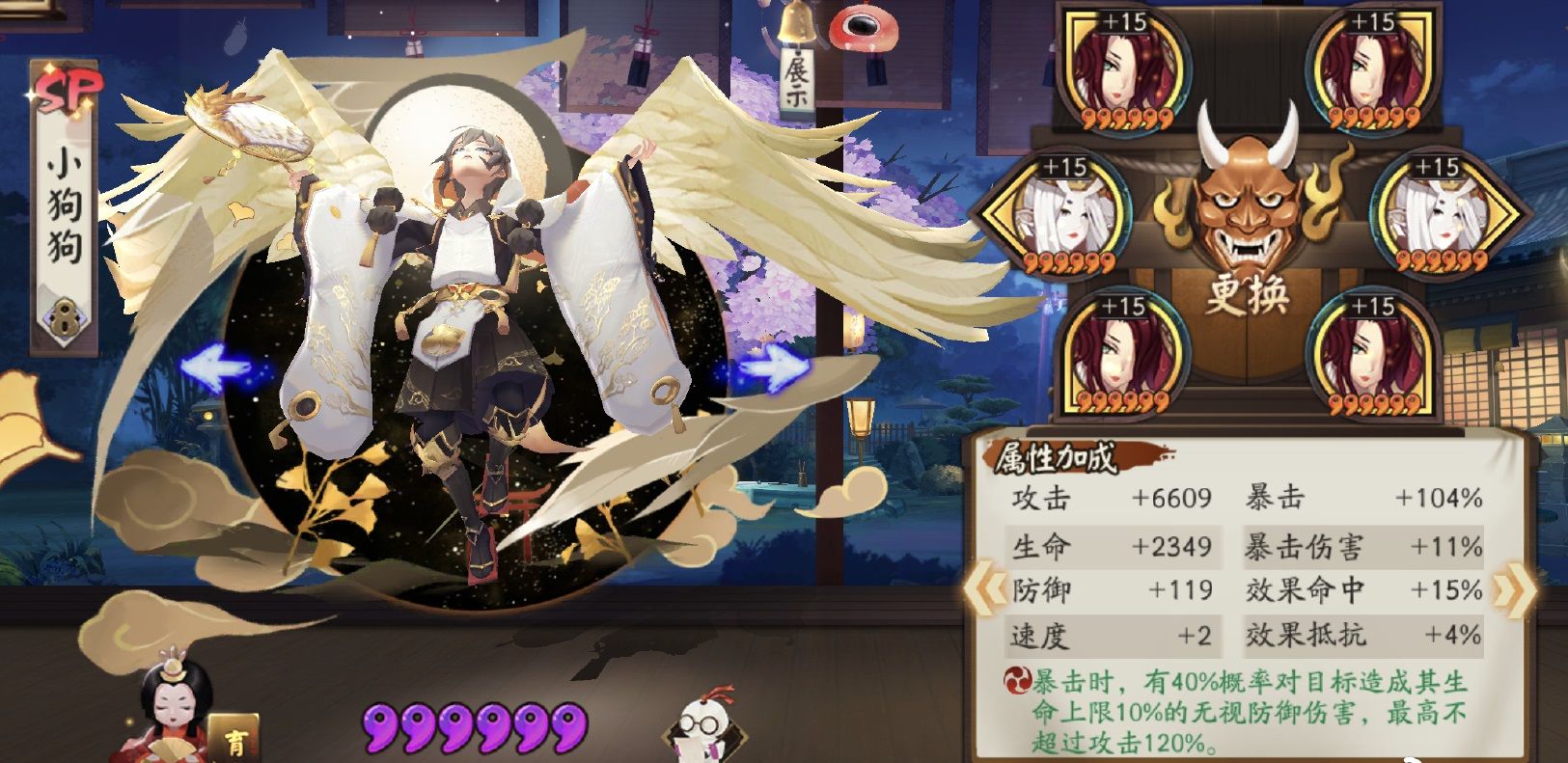 sp小天狗不超星,满暴高攻,不用堆爆伤,直接用御魂计算器算最高攻的一套就行,不用万攻。800带星之咒。