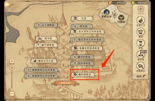 1、首先玩家们点击右上角地图进入魔药课教室;