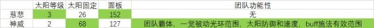 对于太阳武器,奶妈不同等级太阳数据如下表所示(数据来源:VSEPRT)