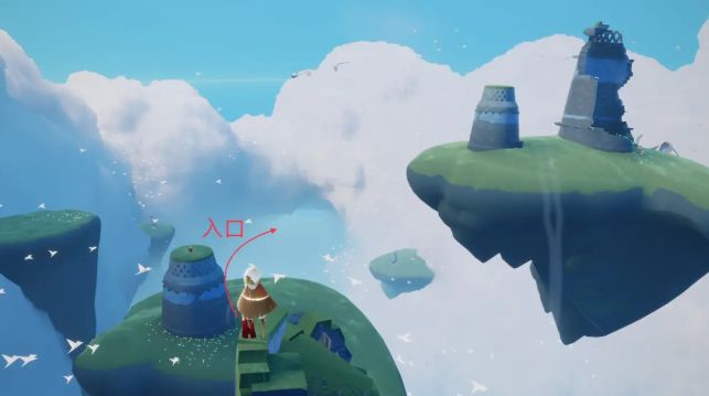 2、书虫先祖就在下图1的位置,从这里降落就能收集。