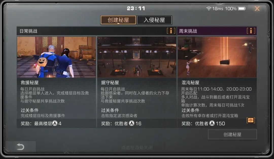 本次高校秘屋的三种模式中,救援秘屋与据守秘屋共享挑战次数,幸存者每日有2次挑战次数,完成后可获得驰援徽章。楼层越高,可获得的徽章奖励也越多。