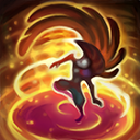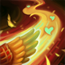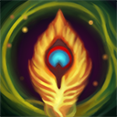 掷出一片神奇羽毛以造成70魔法伤害。若羽毛命中了一名敌方英雄或史诗级野怪,将在3秒后或碰触到一名队友时,获得22生命值的治疗。