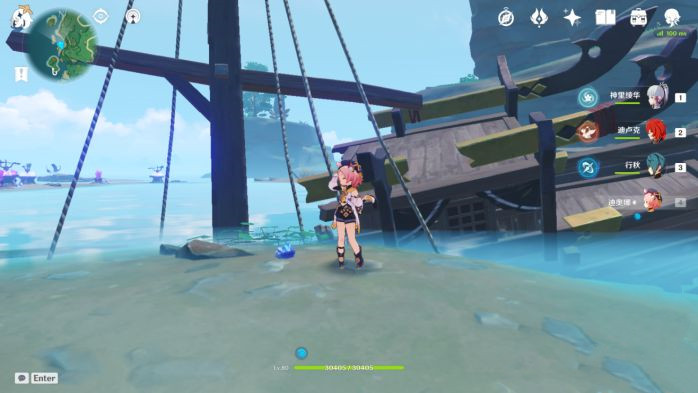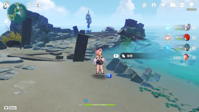 前置触发条件是完成鹤观四天的世界任务,首先来到七天神像附近的浪船锚点处,这里有个海螺,拾取之后,就会有一个灵魂跟你对话,对话结束获得宝藏图碎片。