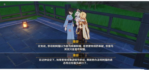 14、接下来回稻妻城找墨田对话,自动进入剧情对话,然后就结束啦。