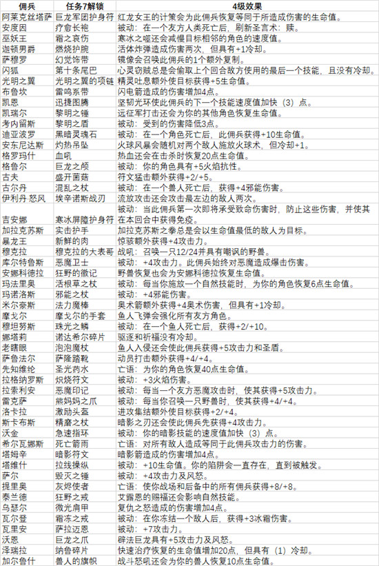 每个可收集佣兵(瓦莉拉也有数据,但按51个算)有18个任务,按顺序给出:
