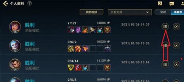 2、然后查看对局就能看到自己的对局资料了,不过游戏内只保存部分对局;