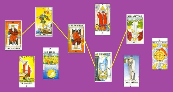 3.大阿卡那牌连线所代表的五行会指引你找到对应的小阿卡那牌,答案就隐藏在小阿卡那牌中!