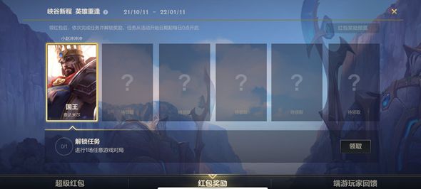 4.在抽到奖励之后,需要返回游戏,在峡谷新程活动下方的“红包奖励”中领取,需要任意对局一把才可以领取。