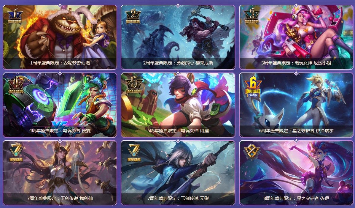 英雄联盟特权网吧限时增加皮肤100款 钻石特权网吧额外增加1-8周年庆典皮肤