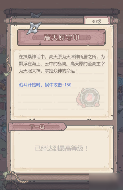强化高天原守印可以提升战斗开始时,蜗牛攻击百分比。