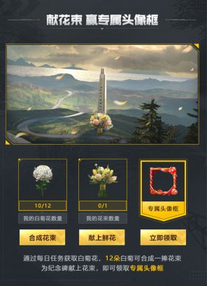 与此同时,“收集花束向英雄致敬”公益活动也上线游戏。活动期间,用户可在游戏内通过对局收集“白菊花”。