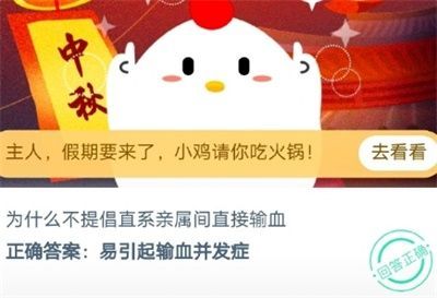 为什么不提倡直系亲属间直接输血?蚂蚁庄园9月29日答案最新