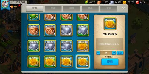 总而言之,金币是一种重要的货币,金币储量直接决定玩家的出兵实力和效率。当金币不够用的时候,可以去仓库看看有没有金币道具,资源数量还是非常可观的。