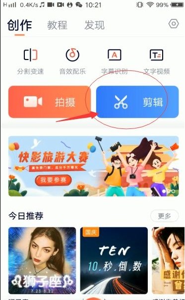 1、所需要的手机app——快影(手机应用商城下载即可)
