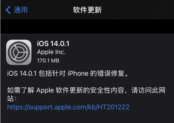 本次ios14.0.1更新包括针对 iPhone 的错误修复,更新内容如下: