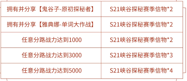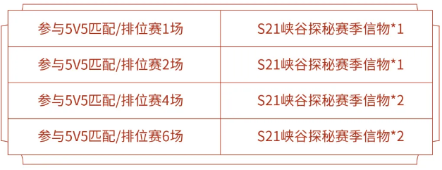 2、荣耀之路:通过荣耀之路活动累计可获得S21峡谷探秘赛季信物*6。