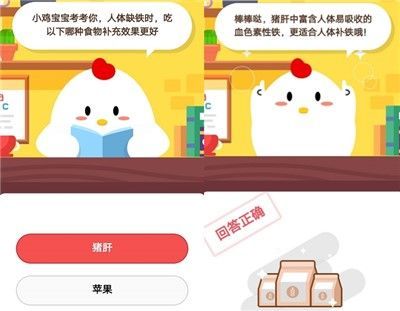 今天的问题是:小鸡宝宝考考你,人体缺铁时,吃以下哪种食物补充效果更好?