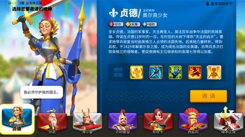 贞德:法兰西的初始统帅,其定位是综合、采集、辅助,很好用的一个治疗紫将,同时对弓兵、步兵及骑兵也有不同的增幅,很实用的一个统帅武将。