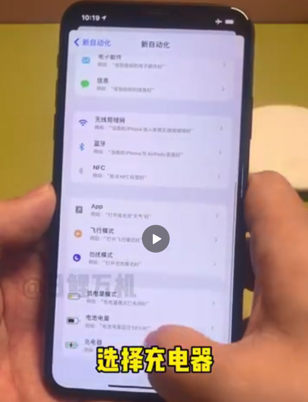 19、在新自动化界面,拉到最下面,点击充电器;