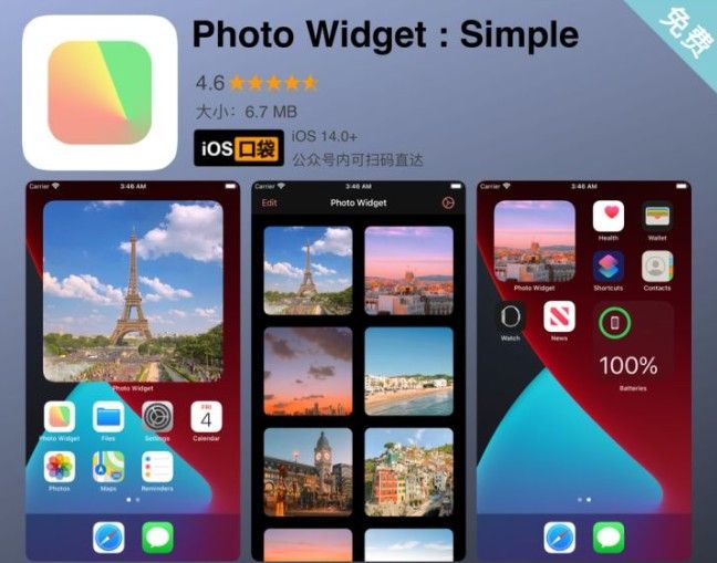 简介:这款可以自定义小组件照片的应用,系统自带的照片组件只能展示精选照片,多多少少有点不方便,PhotoWidget则可以完全自定义,想放啥放啥,载入多张还能支持轮播。