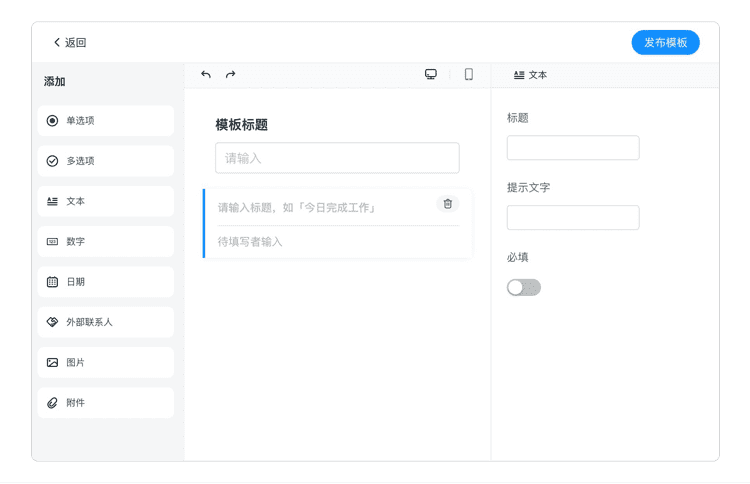 - 日志自定义模板全面升级,内容格式新增单选项、多选项、数字、日期、外部联系人等类型。写日志更省时省力,汇报内容更规范。支持四端、支持多语言。