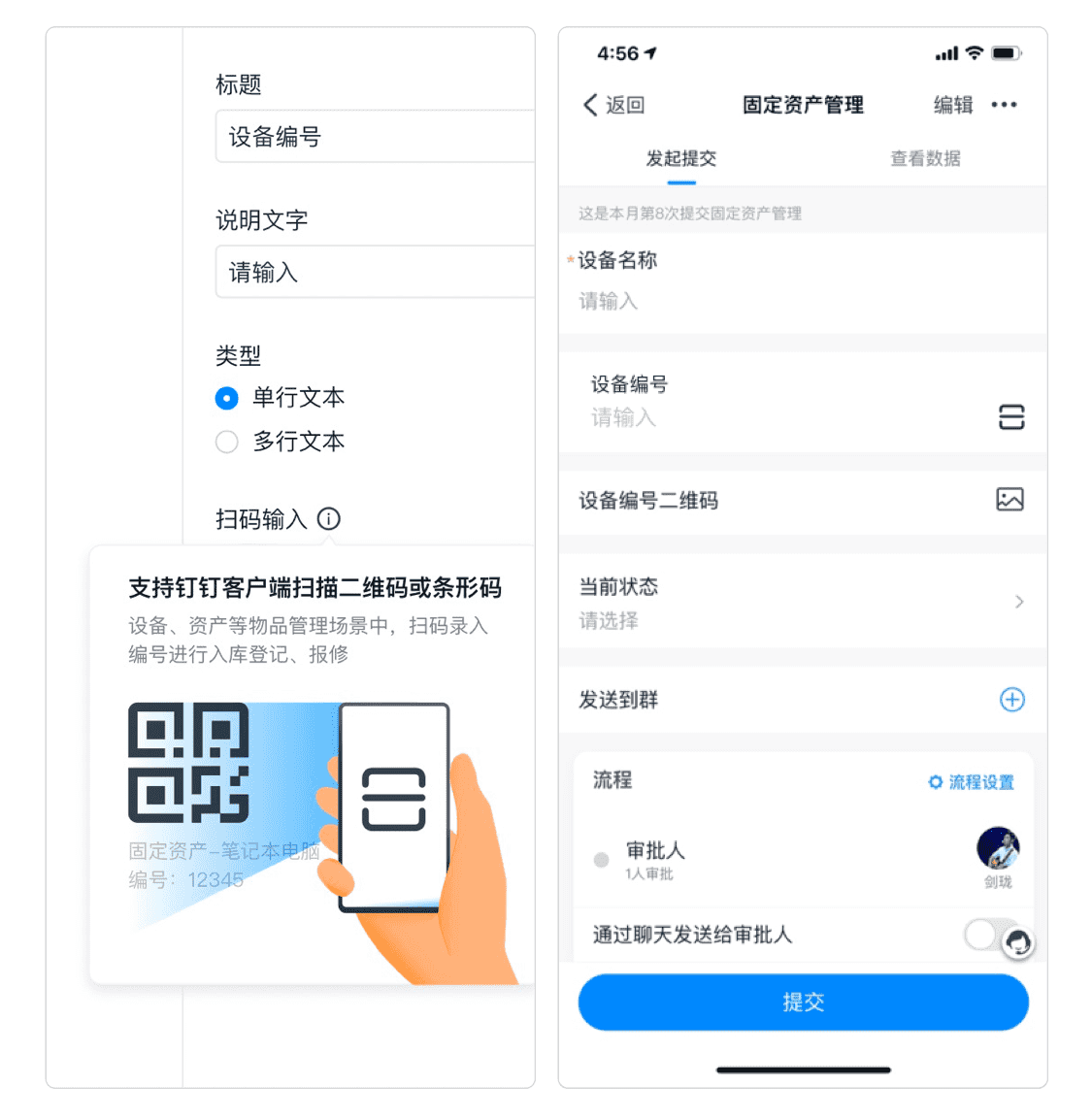 - 扫码识别:审批表单控件支持扫码输入了,可在表单编辑里打开功能开关。