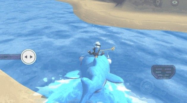 技能二:召唤鲨鱼载具,可以乘坐双人。鲨鲨是海陆两用载具,既可以在陆地上飞驰,也可以在海面上畅游,带你翻山越岭,漂洋过海。这鱼没白养。