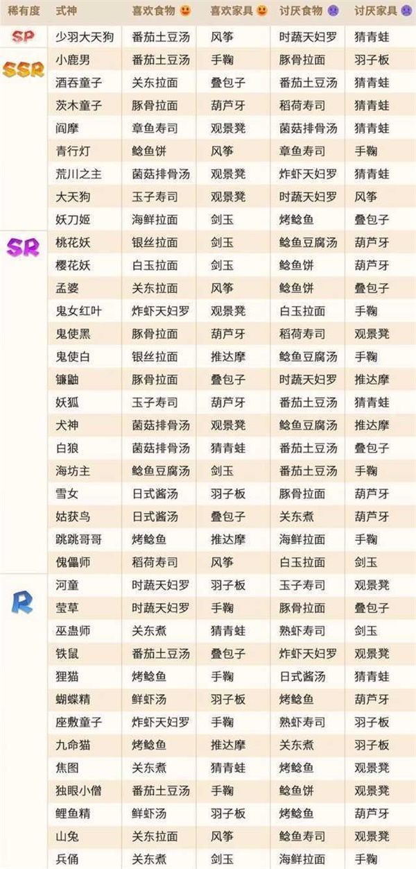 使用方法:快速过一遍好恶用,只放一个玩具,然后场上除了喜欢或者不喜欢该玩具的式神一个个拖上去,如需式神点对点的请拉到该版块的末尾。