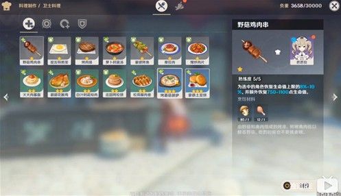 言归正传,食材加工功能需要进入烹饪界面后才能找到,这也是烹饪高级料理的必要手段,能丰富食谱,大部分原材料恢复效果都非常一般。