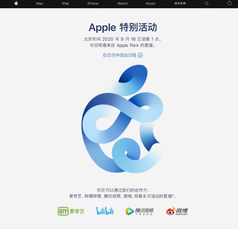 2020苹果秋季新品发布会直播入口