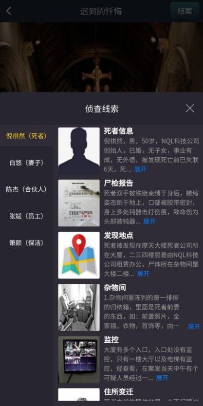 犯罪大师迟到的忏悔案件更新后,大量的玩家都想要知道这个案件的真相,今天小编将带来迟到的忏悔案件的具体流程,让大家都可以快速的了解这个案件的内容,想要知道答案是什么的玩家,下方的攻略赶紧看看吧。