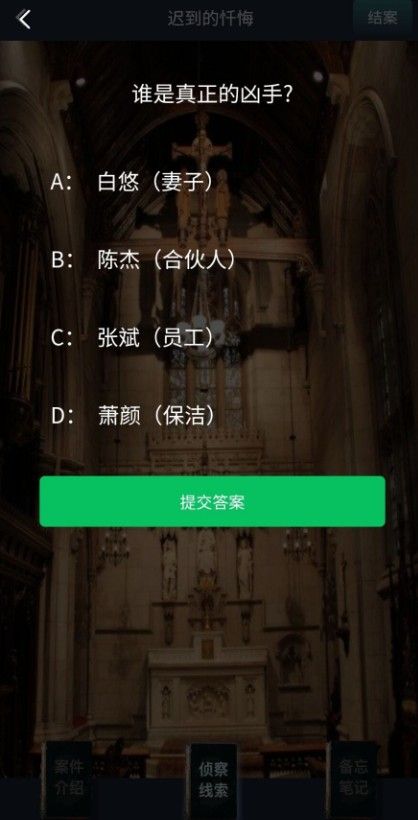 犯罪大师迟到的忏悔答案介绍