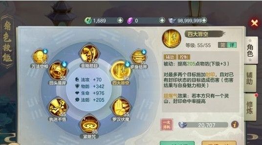 从技能效果来看,灵山拥有五个控制类技能和一个超强的辅助技能,常用技能紧箍咒和执迷不悟,紧箍咒可以提供三回合的封印(无法普攻、无法用技能),但是可以使用道具和特技!(PK的时候一个药品或者特技就可以解封了)