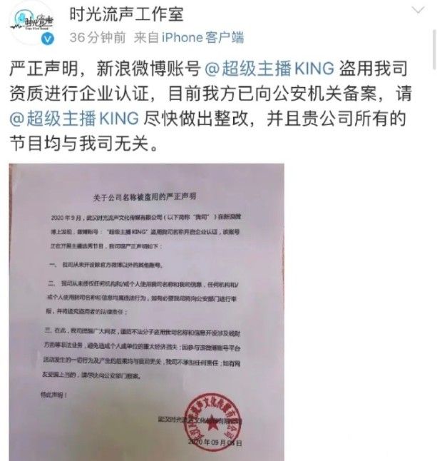 只不过目前已经有公司出来声明了,这个超级主播King微博热证的公司说并没有什么活动。