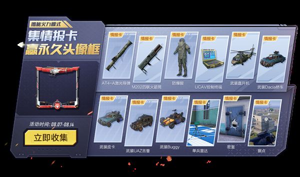 活动玩法:玩家完成每日活跃度任务,获得情报卡,累积情报卡数量即可获取终极奖励——火力对决头像框。