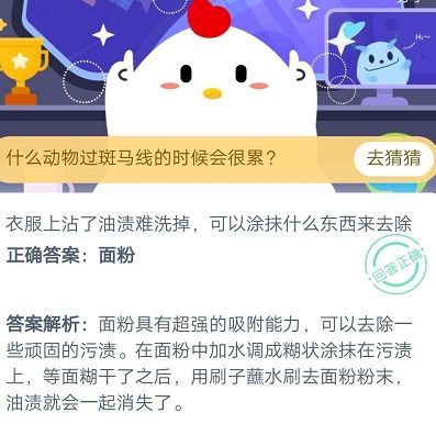蚂蚁庄园8月6日的问题是衣服上沾了油渍难洗掉,可以涂抹什么东西来去除?给出的选项是面粉、红酒。大家知道哪一个是正确答案吗?