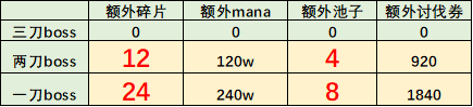 首通普通boss给10讨伐证首通困难boss给20讨伐证,vhBOSS给40H本每天掉落90券。