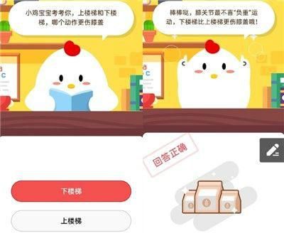 上楼梯和下楼梯哪个更伤膝盖?蚂蚁庄园8月31日小鸡答案