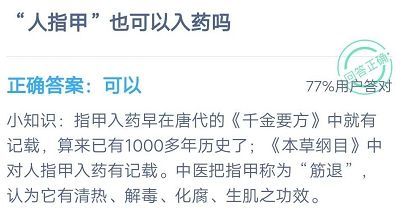 人指甲也可以入药吗?蚂蚁庄园今日答案8月31日