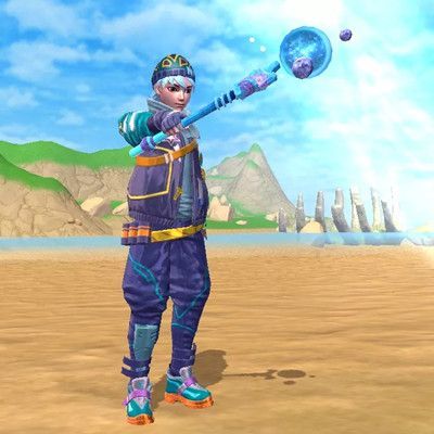服饰也有多种宇宙星系的元素,深蓝色做底,女生以橙色作为配色,男生则是青色,上衣有银色行星图案,胸前佩戴着各式圆牌。