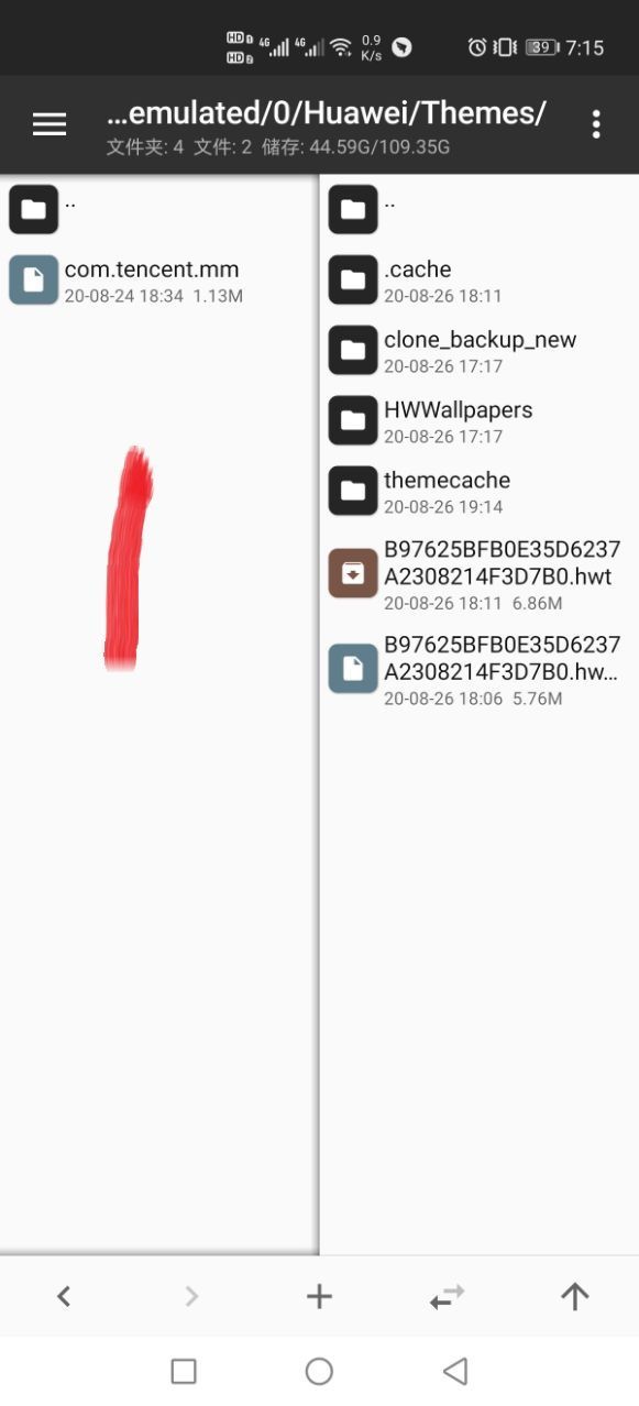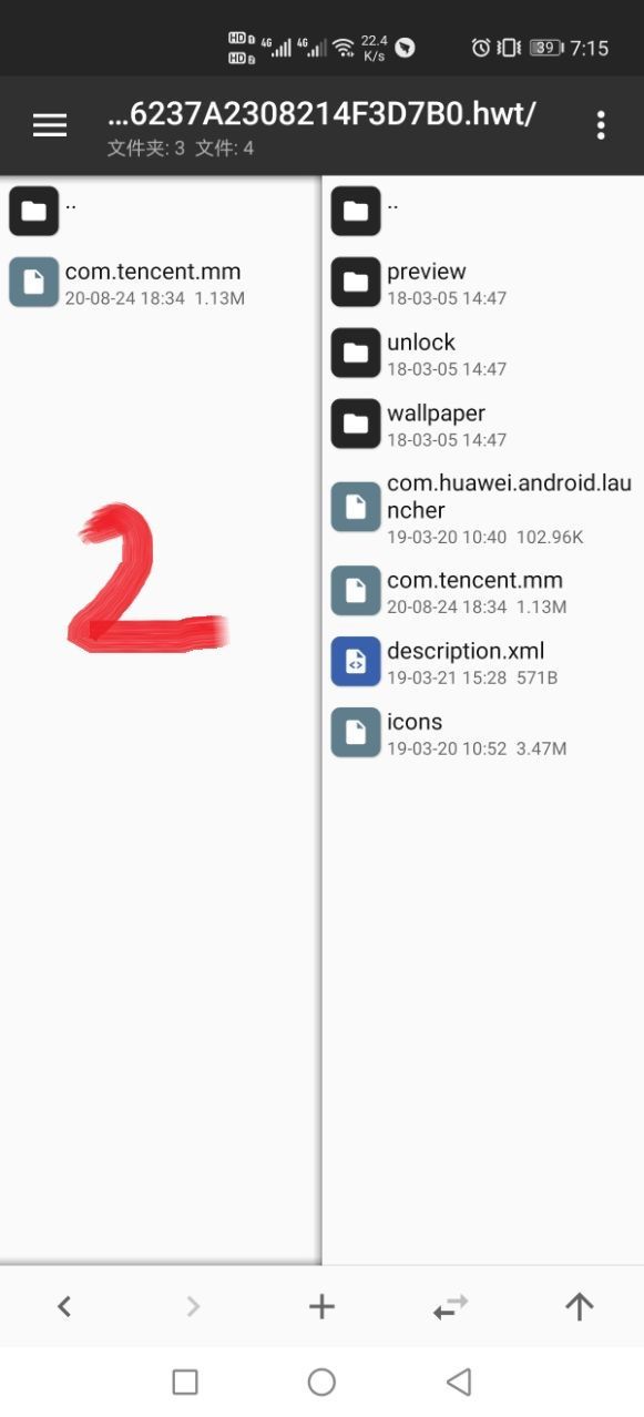 1.在MT管理器中找到我们下载的猫和老鼠气泡zip安装包并打开如1图中的左边展示一样,右边的路径就是/storage/enulated/0/Huawei/Themes/