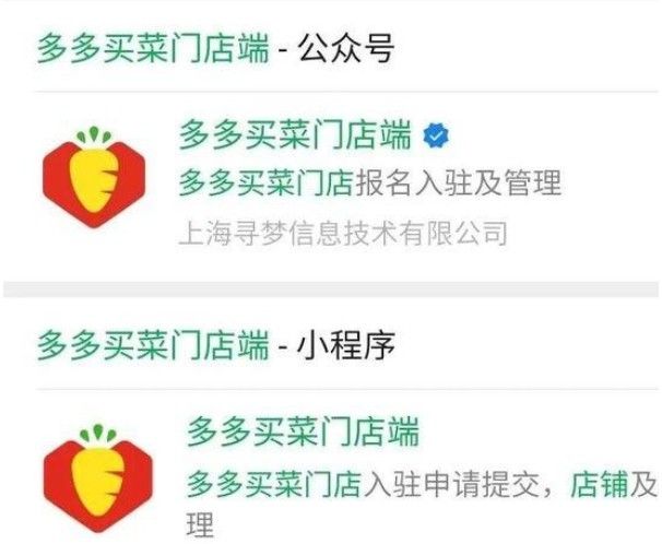 从公开信息显示,拼多多的多多买菜已经开通了“多多买菜门店端”微信公众号和“多多买菜”微信小程序。