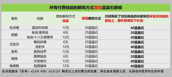 我们将给全部9个付费技能增加蓝晶石解锁选项。