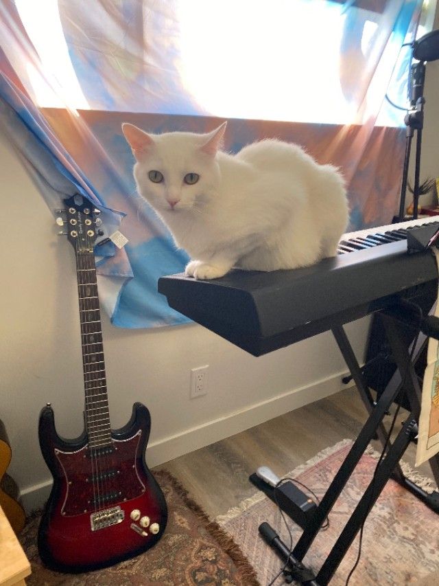 在发布更多的图片中,可以看到,这位新的女英雄,热爱音乐,有一把自己心爱的吉他,有一只陪伴在身边的白色小猫。(背景故事暂时还不知道)