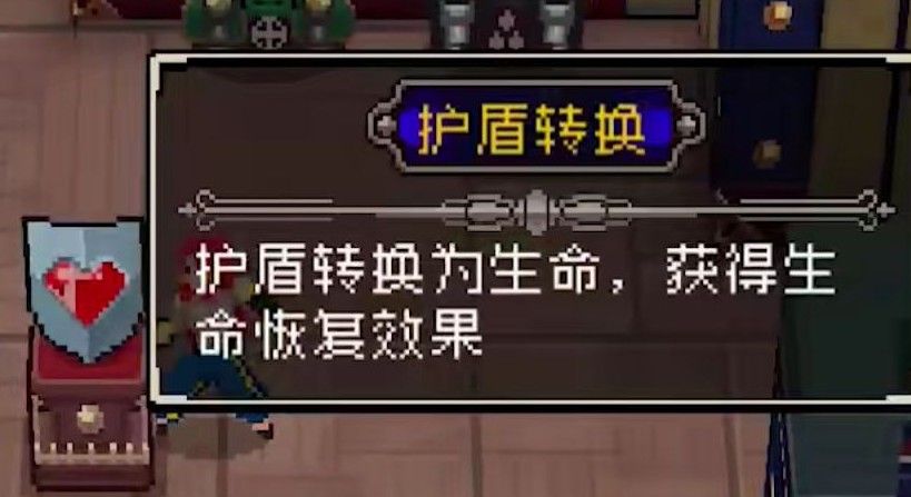 护盾转换为生命,获得生命恢复效果,生命转换的相反版本,个人认为没有生命转换好,虽然护盾可以回复而生命并不可以恢复,但是这个道具消除了爆盾效果,而且很多方法都可以恢复生命。