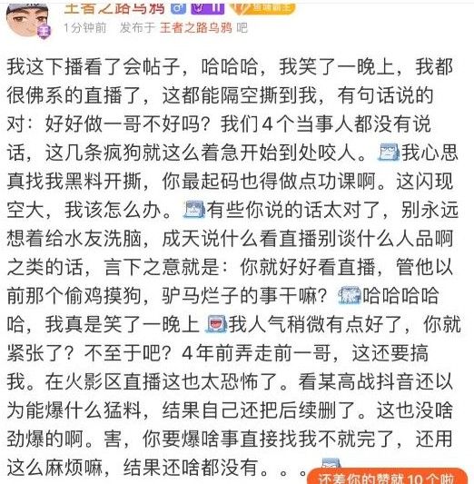 乌鸦当时在直播并不知情,下播以后对这件事情做出了回应。