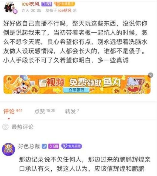 前半夜乌鸦的确和几位老板连麦了,结果和秋风黑的完全不一样,秋风的鱼吧在那摆着呢!谁先黑的谁大家都清楚。